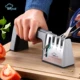 Amolador Premium é um afiador de Facas e Tesouras completo de Aço Inoxidável + Cerâmica Com Alça Segura 4 Em 1